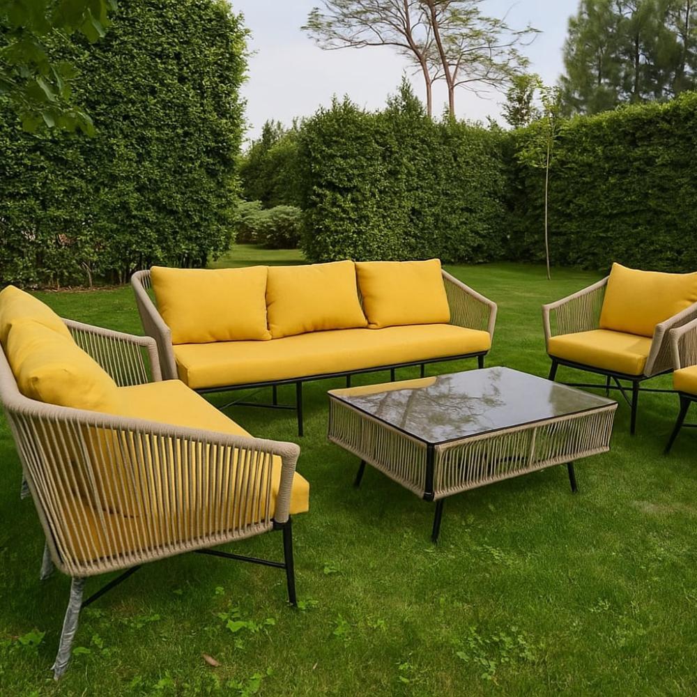 طقم جلسة حديد ملبس يدات خشب سويدي( 5) أشخاص