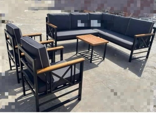 كرسي يكفي ثلاث أشخاص حديد أبيض أو أسود ملبس بالخشب السويدي العريق يفصل حسب اختيارك للتصميم.